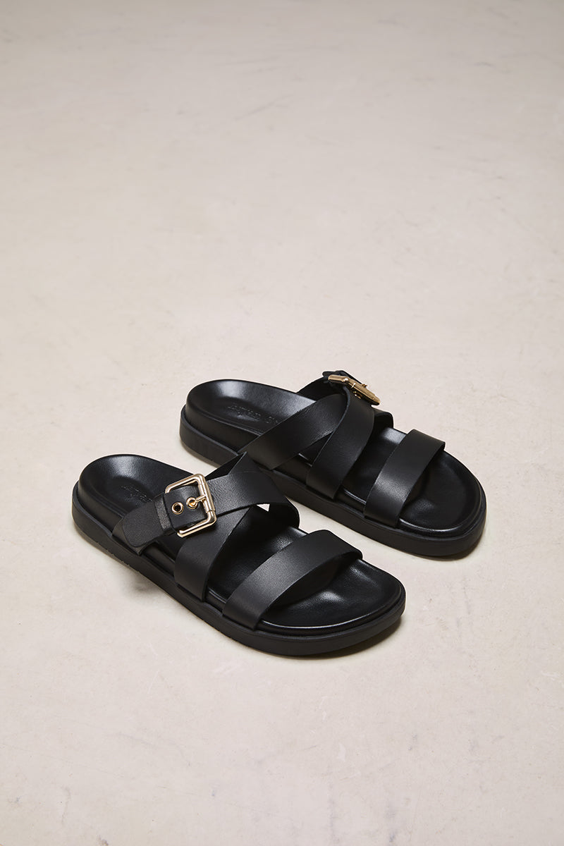 Sandalia con tiras de piel ajustables gracias a su hebilla y suela ergonómica tipo bio.
